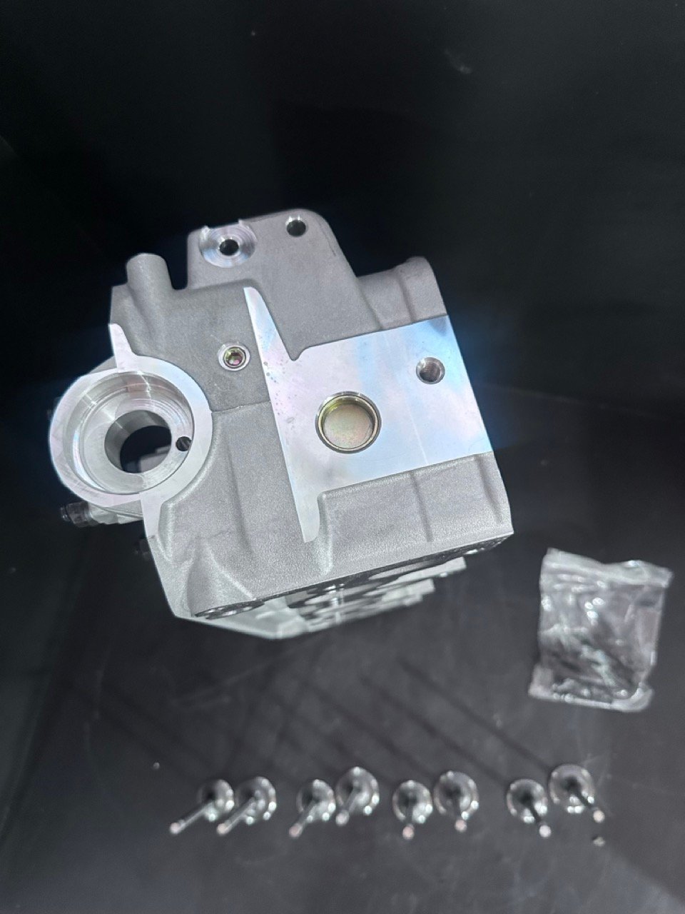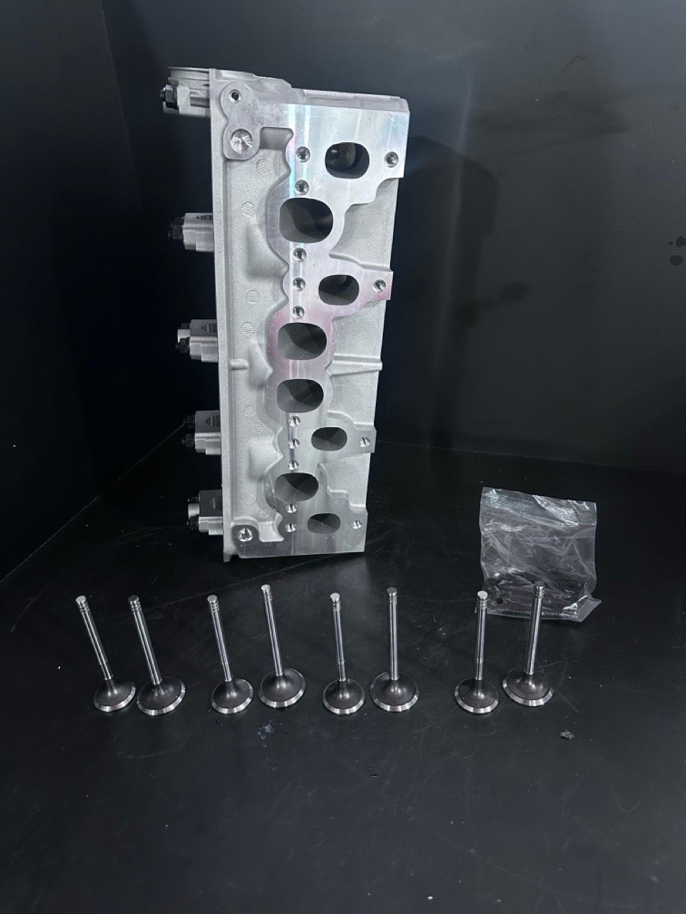 Tapa de cilindro y juego de válvulas. La tapa de cilindro viene con un juego de 8 válvulas sin armar.